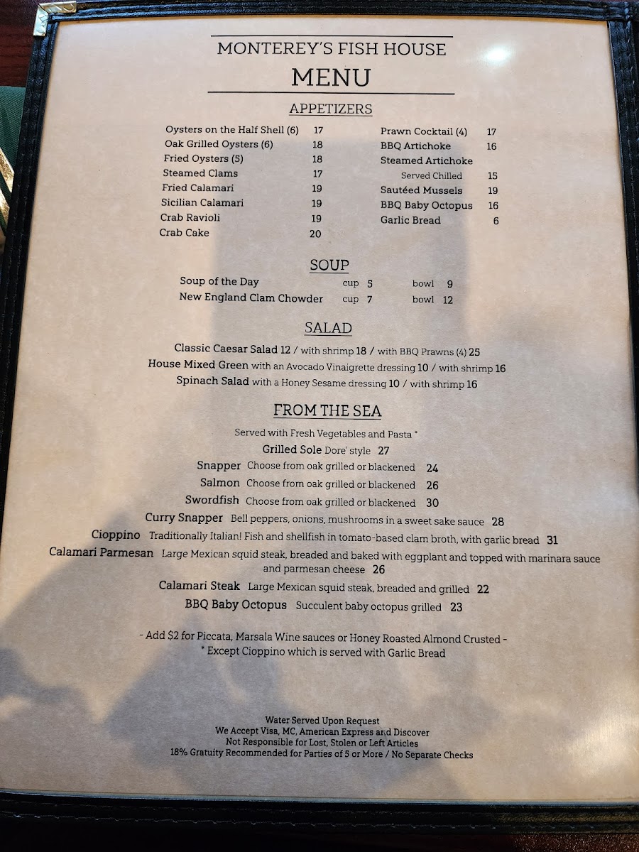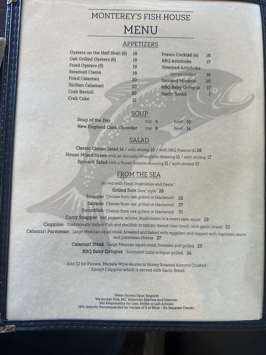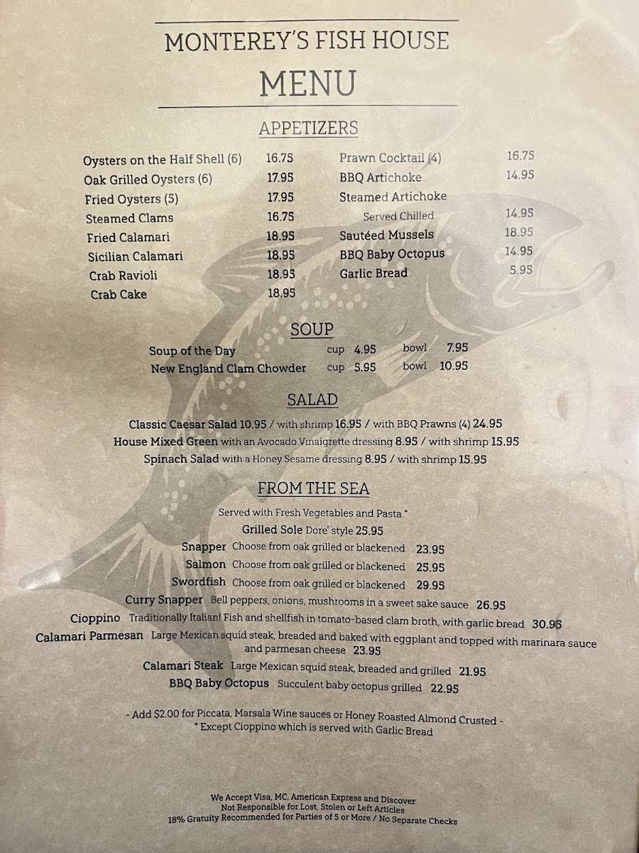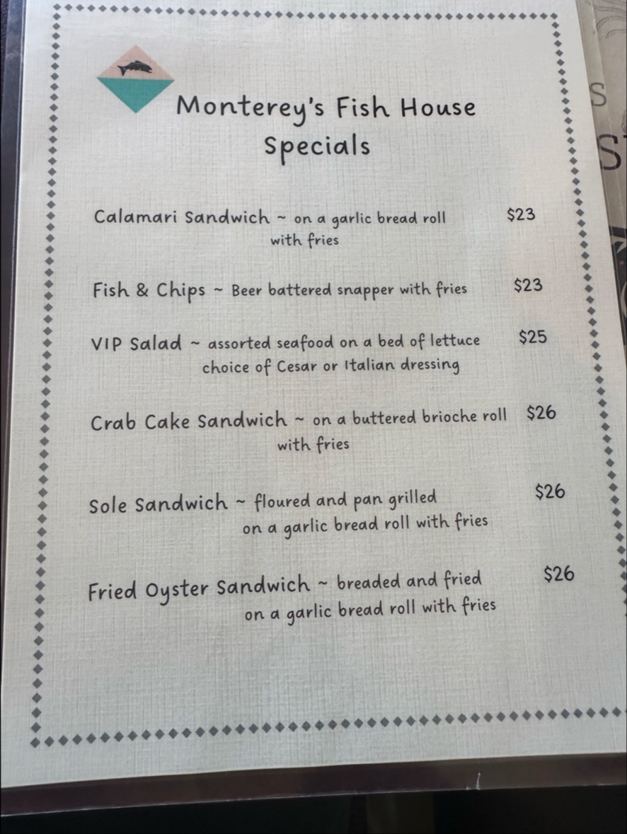 Monterey's Fish House Menu