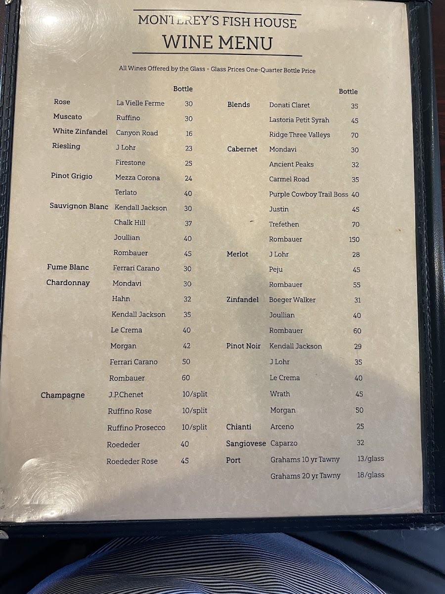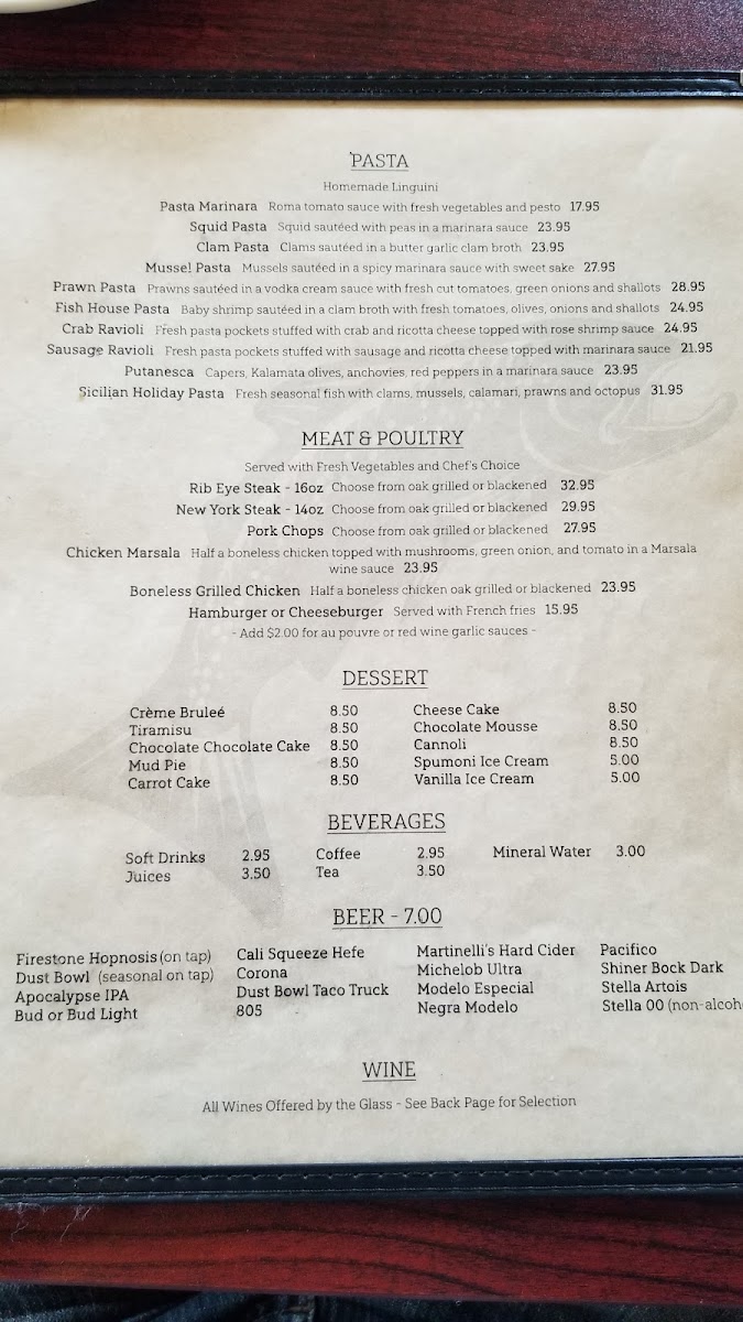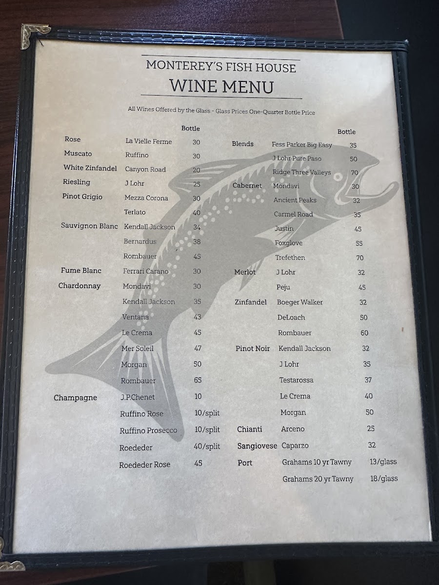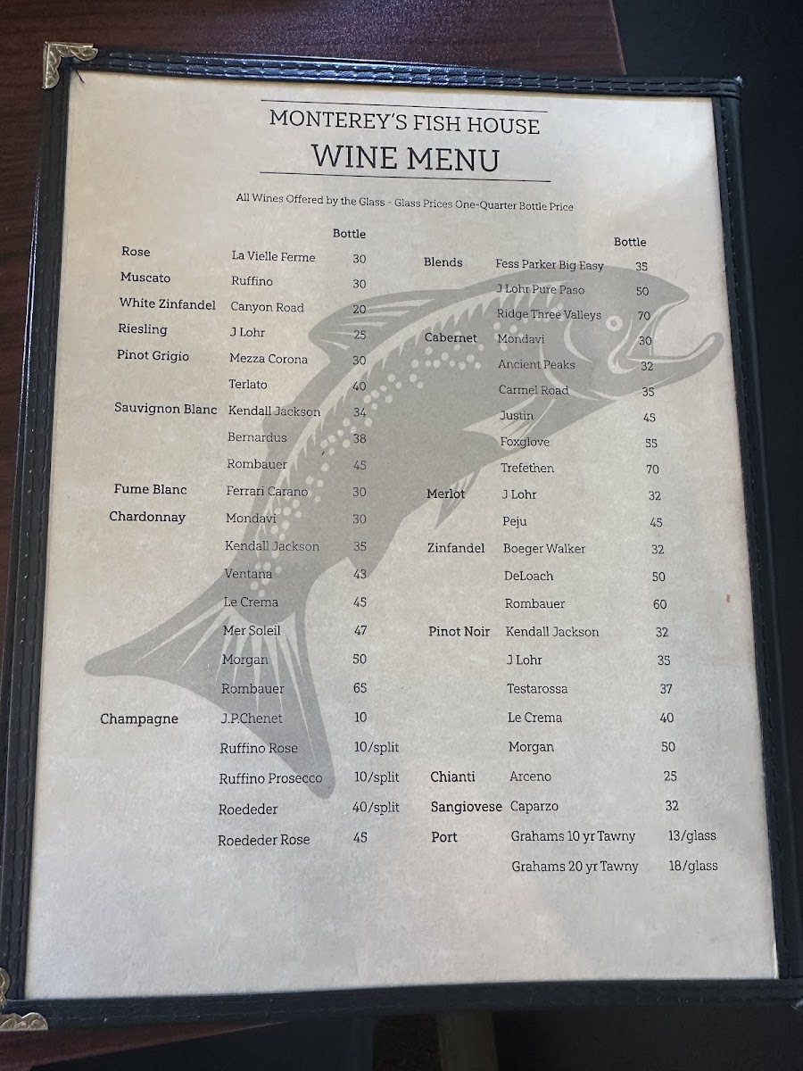 Monterey's Fish House Menu